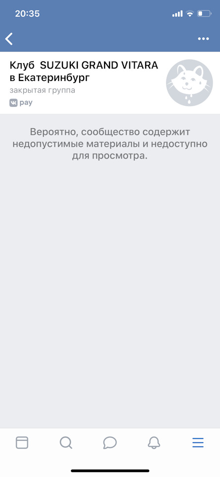 Вероятно общество содержит недопустимые материалы. Не ступается почему-то, кнопок нет (