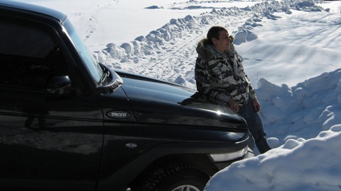 А потом осень, грязь да и в конце концов работа и в первые пробы состоялись уже по снежку.Класс зима, морозец подмосковный! Выехал в поле не забыв снеговую лопату.Кстати она не пригодилась.Дури в 220 л.с. у проходимца вполне хватает.А удовольствие от езды вне дорог и уверенность доезда из пункта А в пункт В по короткому расстоянию лишь подкрепляют боевой настрой сидя за рулем этой ЗВЕРЬМАШИНЫ!Даже на стоковой резине.