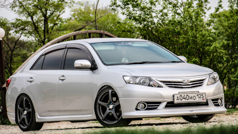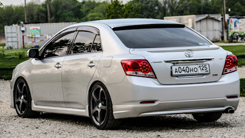 Всех приветствую, это мой уже 3 Allion, машина куплена в Японии с пробегом 55 тыс, глонас установлен только несколько дней назад и вчера выдали ПТС, пока машина была без документов была установлена Сигнализация, чехлы оригинал, спидометр оптитрон от s модели, ручка переключения кожаная, сабвуфер.Так же куплен руль кожа, окантовка туманок как на s модели под хром, задние дисковые тормоза и ещё много чего по ходовке тоже лежит и ждёт своего часа.