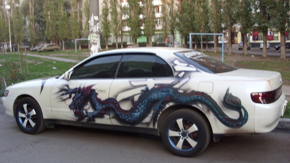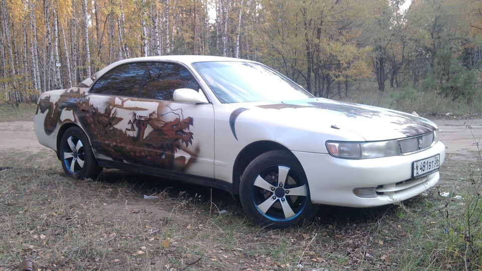 С детства мечтал о заднем приводе, и неделю назад мечта сбылась))) купил CHASER 2.5 на автомате, аэрография по всему кузову кроме крыши, диски тоже красились под этот авто, аудио подготовка, радародетектор, сигналка с обратной связью и автозапуском, все это досталось мне от прежнего хозяина!