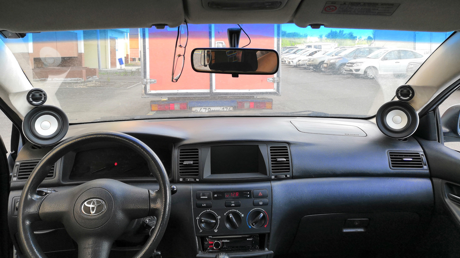 Штатная магнитола с 4 динамиками и бортовым компьютером. Не фонтан, конечно, но для начала сойдёт. В планах — трёхполосный фронт и саб с поканальным управлением. В десятке я строил двухполосную систему, но там всё упиралось в ограничения. Здесь же — полный простор для творчества. Начну с шумо- и виброизоляции, подготовки дверей и установки съёмного фальшпола под усилители.