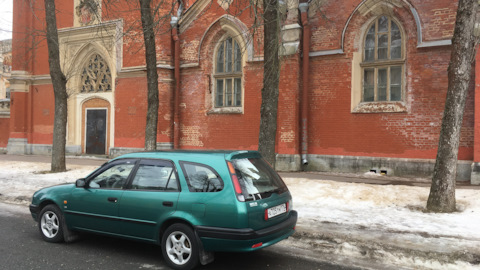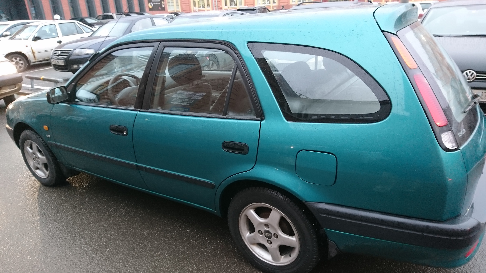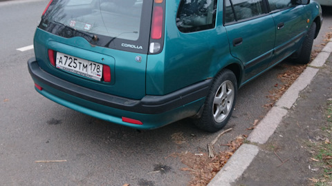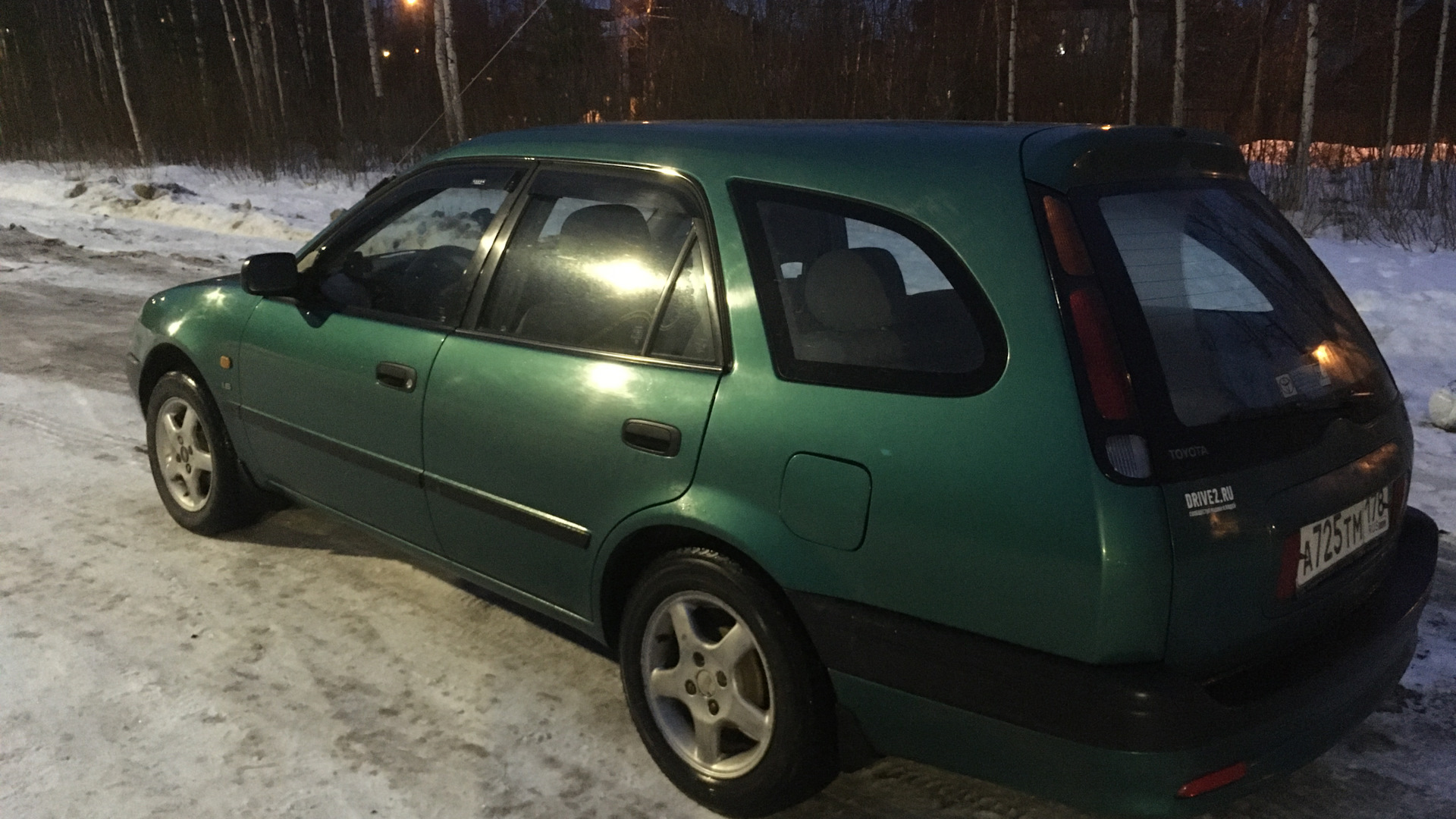 машина по спидометру 85 т.км., от двух хозяев и ПТС голубеньким, старого образца. Машина стояла последние 2 года совсем без движения на улице, что дало о себе знать в условиях Питера (закисли суппорта, появились рыжики и ржава снизу. Все стекла родные тойотовские вкруг, даже глушитель и то родной с шильдиком тойота еще жив, гнили нет совсем, метал родной, с родным окрасом, стояла кассетная магнитола пионер 99г.в. и резина 2004г.в. что также косвенно намекает…). Есть вмятина без скола краски на заднем крыле (думаю вытянуть), после покупки поменял сразу все жидкости и масла (вскрыли поддон коробки для промывки масла — а там все девственно, масло было светлым), да конечно прикипели от стояния болты заднего тормозного барабана и болты крепежей шлангов, закисли передние супппорта (перебор с ремкомплектом и прокачкой, новыми колодками и замена внутрянки), заменены топливная и тормозная магистраль на медь, все резиновые приводные шланги, заменен топливный и остальные фильтра (в т.ч. тонкой очистки в баке), конечно свечи новые, резина вся новая Из приятного — стоят спереди и сзади так называемый "комплект для бездорожья" усиленной подвески и стоек стаба, усиленные пружины, что делает машину немного выше и жесче (настолько, что на лежачих копах торможу в ноль, так как шток амортов вылезает вноль)) (кстати кто что думает про амортизаторы с увеличеным ходом?, какие бывают и где заказывать), металическая защита картера на все дно. Машинка бодрая и чудесно едет! До этого была хонда сивик аэродек английской сборки 2000г.в. — (технологичный мотор с простым салоном, и космосом на расходники). Живая машинка 22 летней давности))