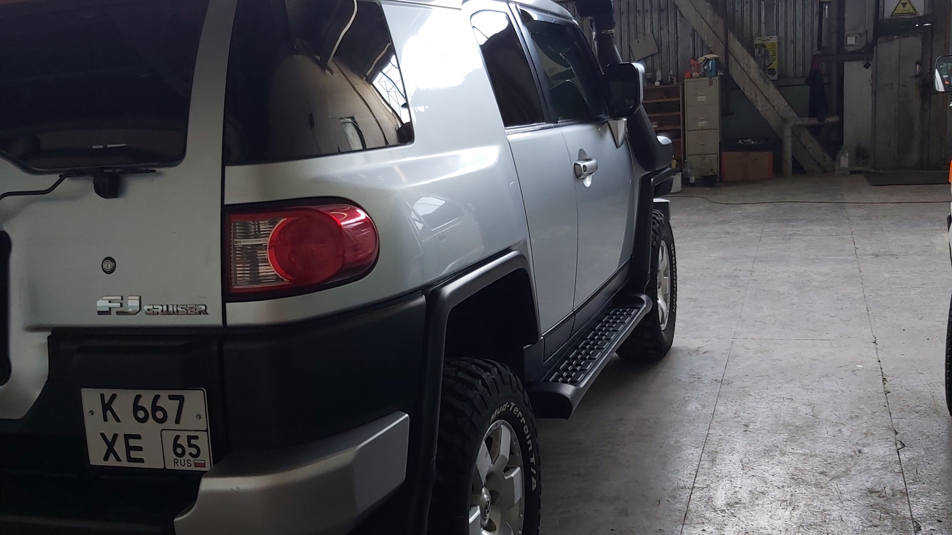 Fj cruiser этот уже второй на моем пути только уже на МКПП, на машине есть шнорх какие то цветные пружины с амортизаторами, защита на пол днища и впринцепи все остальное сток )