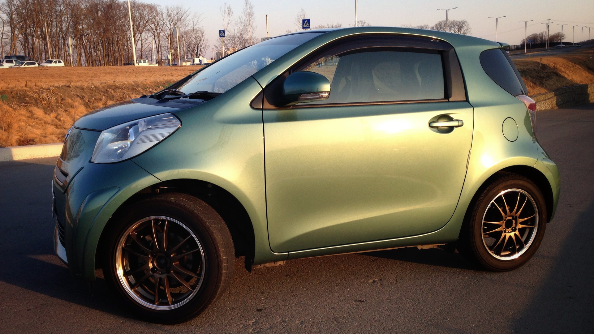 Хотел IQ примерно с 2008 года. Ну то есть с тех самых пор, как только его увидел. Должен был купить себе его еще в 2013 г., но нечаянно купил себе Auris. Aurisом был очень доволен, но не переставал хотеть IQ. Я бы не успокоился, пока не купил бы его. Постоянно просматривал японские аукционы. Смотрел, какие IQ, по чем продаются. Как то вечером, в субботу, увидел объявление о продаже IQ на Dromе. Именно такого как мне хотелось. А хотелось мне: 1.3, кожа, 2din магнитола, обязательно с туманками и желательно чтоб сразу на литье. Цвет не имел особого значения. Был согласен на любой кроме серебристого. Вот именно такого, подходящего по всем параметрам, зеленого и с честным аукциоником я и увидел. Спать в ту ночь я больше не мог. В 9 утра, в воскресенье я уже был на рынке. Даже продавец к тому времени еще не проснулся. Не было его. Дождался. Посмотрел. Понравился. Подумал… Вернулся еще раз на рынок. Еще раз посмотрел. Определился. Отдал залог и поехал искать деньги. В понедельник я уже стал счастливым обладателем.