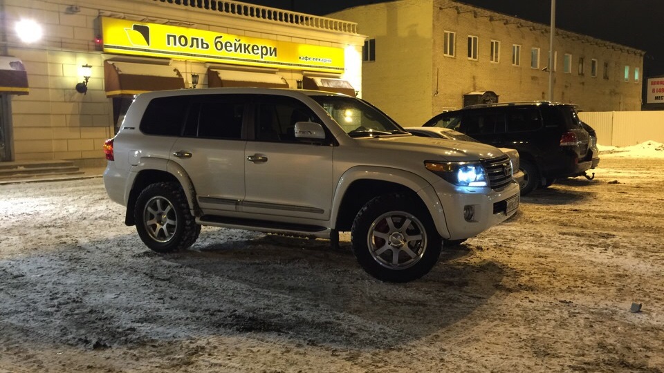 Решил выставить своего коня на обозрение. Машинка в комплектации Brownstone. Данная комплектация понравилась прежде всего салоном с кожей коричневого цвета, что и предопределило выбор в его пользу. Так же дополнительно установил себе комплект от Arctic Trucks AT33 включающий в себя лифт подвески на 4.5 см, расширители арок, колёса R20 с резиной 305/55 R20 Mickey Thomson BAJA ATZ и что-то там ещё. Всем известно, что штатные тормоза у LC 200 не ахти — поэтому сразу поставил на перед комплект тормозов StopTech 380 MM BIG BRAKE KIT. Встали как родные безо всяких доработок, даже с учётом лифта в 4.5 см. Тормоза стали очень чуткими — реагируют при малейшем прикосновении. Торможение плавное но сильное. При резком торможении в пол машина сильно клюёт носом. В принципе не напрягает так как экстренно тормозить приходится не часто, но со временем установлю комплект тормозов StopTech также на заднюю ось, чтобы исключить клевок носом и дополнительно улучшить тормоза.