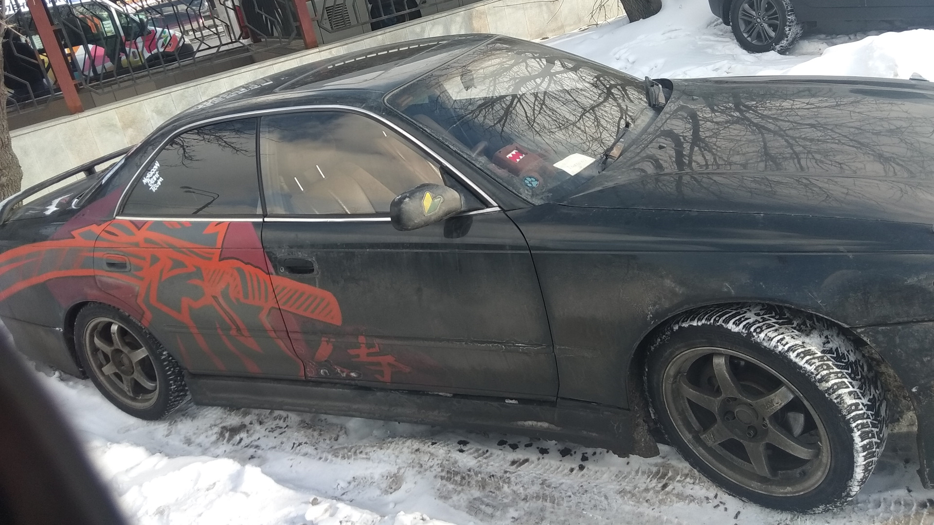 Toyota Mark II в комплектации GrandeG имеющий на борту мотор серии 2JZ-GE и автоматическую коробку передач. Несмотря на 1993 год выпуска, автомобиль сохранился в родной краске (местами имеются потертости и сколы, они уж очень были видны, поэтому пришлось закрасить эти места). Очень страдает салон, а именно передние электростулья под перетяжку, и стертый до безумия руль (я не представляю что с ними делали), но как ни странно, мотор имеет родной пробег в 320 тысяч (на сегодняшний день). Подвеска это отдельная история, когда едешь, реальные ощущения нового автомобиля. АКПП странно себя ведет, то пинается переодически(!), то очень поздно переключает передачи, но с этим всем буду разбираться по наличию времени. А так едет очень бодро, и пока этим автомобилем я доволен.