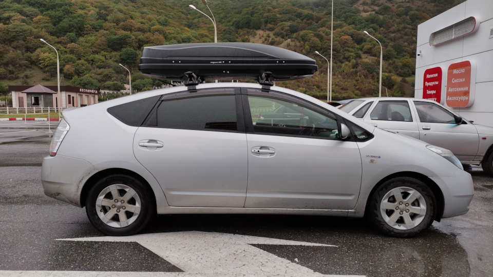 Установил летние шины, и поперечины с автобоксом на крышу.