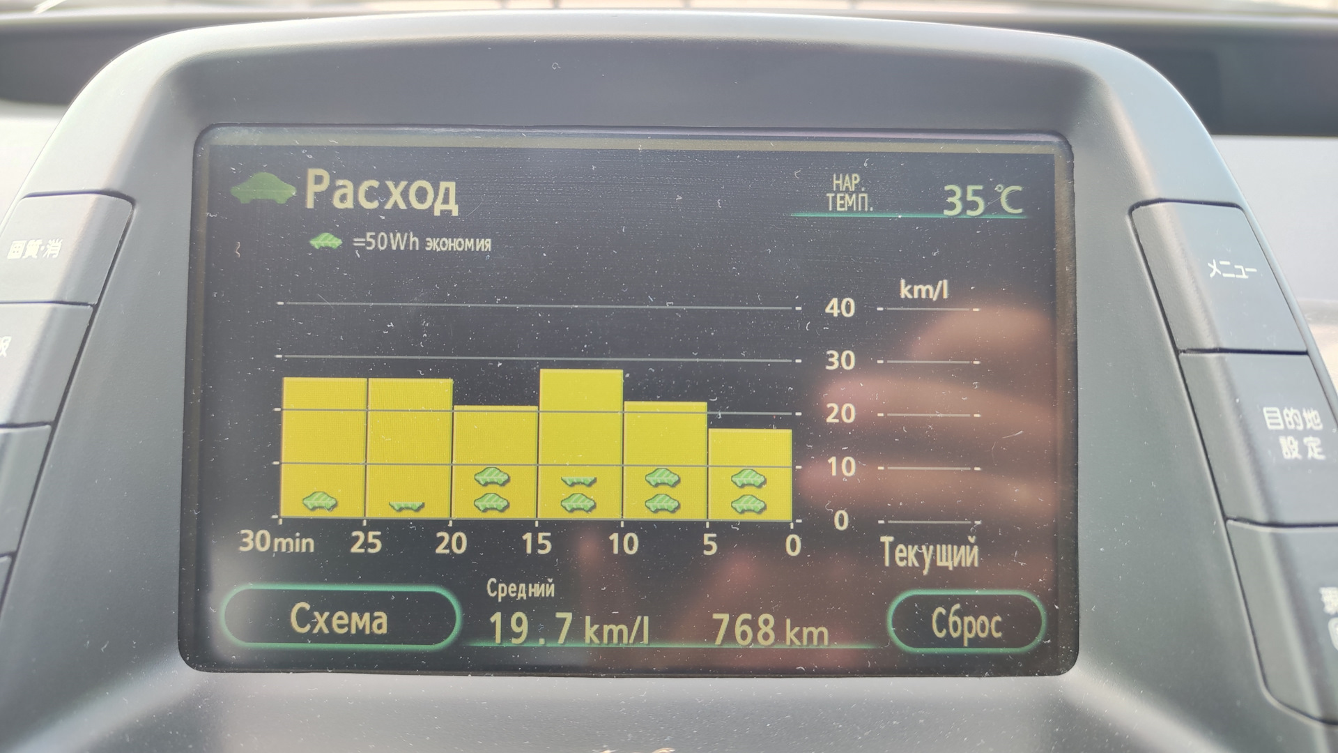 Не знаю, может и можно конечно на приусе с выключеным кондиционером, минимально необходимым количеством потребителей и максимально плавными движениями добиться такого расхода, но в повседневной суете, честноговоря нет желания такое устраивать, поэтому на премио я таких цифр не добивался. Лично меня вот этот предел расхода в 5-5,5 литров при езде скажем так "не парясь, если надо давить двумя, ногами газ" более чем удовлетворяет.