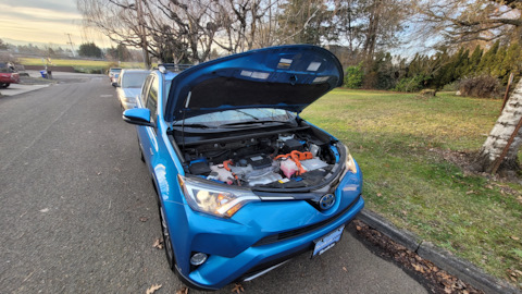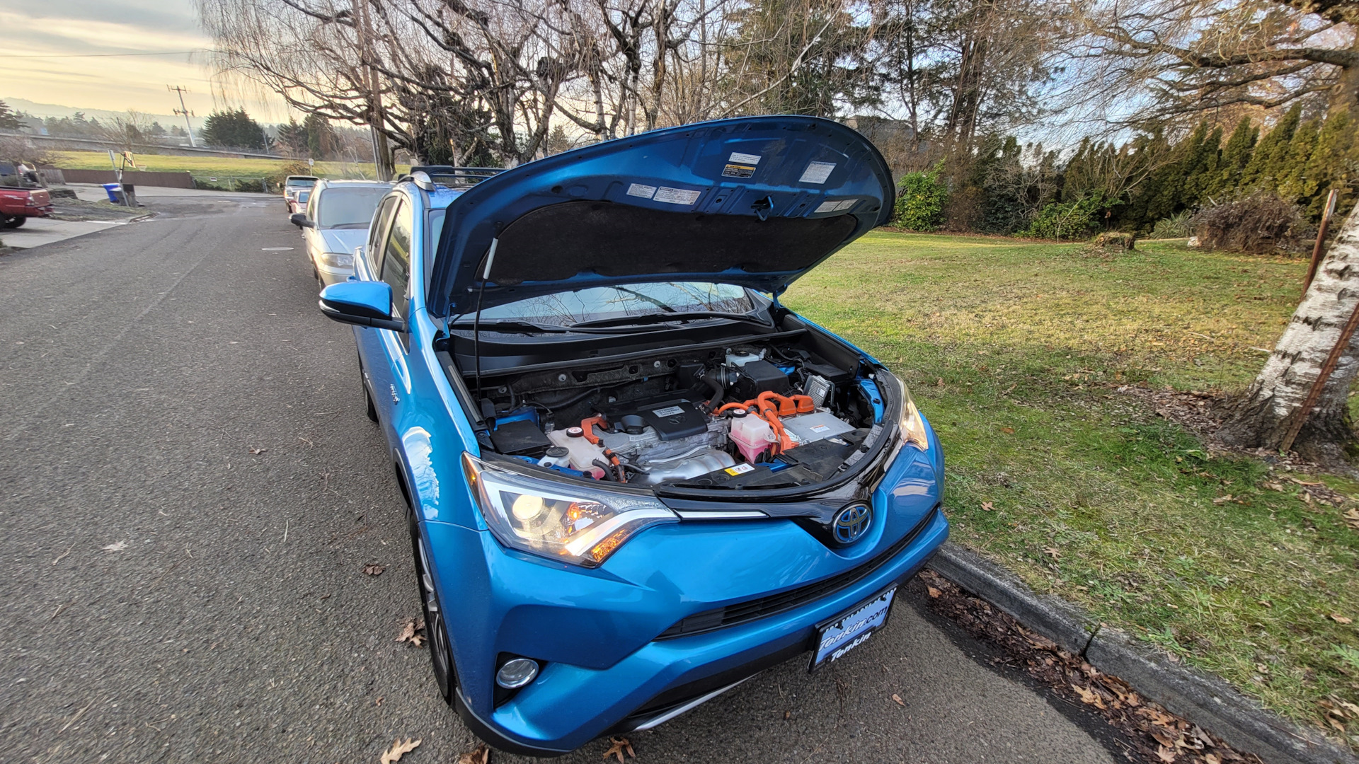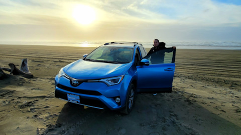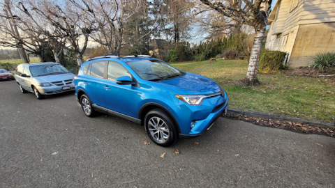 22 декабря 2020 днём решили поехать с женой покататься по ватосалонам Toyota и Honda, так как интересовали машины Honda Accord Hybrid, Toyota Camry Hybrid и Highlander Hybrid. Ничего не предвещало покупки автомобиля в этот день. Но на парковке автосалона нашли красивого цвета RAV 4 Hybrid 2018 года, с небольшим по местным меркам пробегом 54тыс. миль. У нас очень много хайвэев и большие расстояния. К нам конечно же подлетел менеджер и предложил тест драйв. Сделали копию моих прав и я с женой поехал кататься(без менеджера). Машина оказалась очень тихой и мягкой, разгон плавный, но если нужно, то очень энергичный, сиденья с боковой поддержкой! После тест драйва я подумал, а почему бы не попробовать купить её в кредит! До этого у меня была только одна кредитная карта на 500$, а значит у меня очень плохая кредитная история. НО, в салоне оказался русскоговорящий финансовый менеджер, который заверил меня, что сделает всё, чтобы мой кредит одобрили. И вот по прошествии 2х часов мне выдают кредит на машину! Стоимость машины 23200$, из них 9000$ моих, остальное в кредит под 5,08% годовых и это мой первый кредит на машину в США! Машина начала радовать с первых дней, при весе в 1800 килограмм расход топлива 6.9 л/100км. при этом 194 л.с. На задних дверях приклеена надпись, что это AWD-I, тоесть все колеса ведущие(All-Wheel Drive). Но не понятно было, что значит I в конце. Что то мне подсказывало, что там нет кардана. Заглянул основательно под днище и правда, кардан отсутствует! Оказывается буква I означает интелектуальный и подключается задний привод только при необходимости и работает от электродвигателя. Вот так они сэкономили на кардане и усложнении конструкции коробки. У бензиновой версии RAV-4 кстати меньше л.с. — 176 против 194 у гибрида. У автомобиля есть функция удержания дистанции до следующего автомобиля во время включенного круиз контроля, а так же предупреждение о сходе с полосы. Наверное это у всех RAV4 этих лет, но у меня такая функция впервые. Кстати, когда покупаешь б.у. машину у официального диллера в США, то они её полностью проверяют и сертифицируют для продажи. Это значит, что автомобиль полностью исправен и не имеет механических дефектов. Более того они предоставляют полный честный отчет о проделанных работах за всю историю этой машины. Если есть пробелы в истории обслуживания, то сразу видно в отчете. Все СТО добавляют информацию в этот отчет. Для сертификации они меняют резину на новую, ремонтируют всё, что может создать проблемы в будущем и продают автомобиль давая на него гарантию! Теперь в будущем я не собираюсь покупать авто с рук не понятно у кого. Хотя скорее всего следующий авто будет уже абсолютно новый! Для меня это первый автомобиль такого класса, я не искушен хорошими автомобилями. Были у меня Toyota Carina, Mazda 626, Ford Focus, Lada Largus, Lincoln LS, Prius, а теперь RAV4. В сравнении с прошлыми авто RAV сильно выделяется комфортом и наверное самый красивый из всех предыдущих. За 6 дней я успел съездить в соседний город и на океан, проехав около 1000км. по трассе машина чувствовала уверенно, не качает, не заносит, в сильный дождь на круизе она сама держит расстояние до впереди идущего автомобиля, без сбоев, сама тормозит, сама разгоняется. Забыл сказать, что есть режим EV, в котором работает только батарея, например в пробке можно спокойно ехать на батарее, разгоняться резко она не даст, но до 60 км/ч разогнаться можно только на батарее. При до