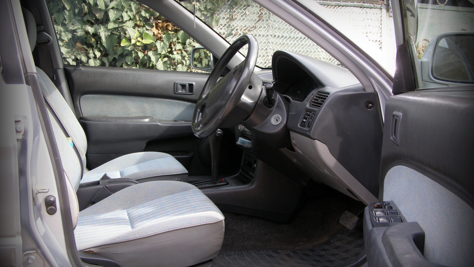 Руль не регулируемый. Подголовники все 4шт. Панель приборная информативная — без тахометра (-) ни чего лишнего и все просто. 1DIN-ый магнитофон, под ним полка для документов или разных мелочей. Кармашки на дверях, индикаторы не пристегнутых ремней, подставка под 2 стакана. Кнопки управления зеркалами. Динамики передние — штатные, задние — Panasonic, подушки безопасности 2шт.