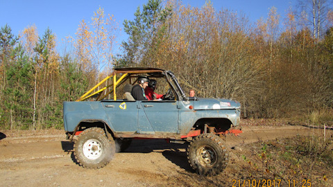 Покупал авто полтора года назад, в относительно потготовленном состоянии.Тех.состояние остовляло желать лучшего.Двигатель стоял ЗМЗ 511 V8(с кулаком дружбы), особого желания не было его оставлять-дабы тяжелый.Решено было поставить обычный УМЗ 4215.Кузов восстанавливать тоже особого смыла не было(ни одной живой силовой коробки, порогов, полов) не было.По случаю приобрели живой кузов, поменяли.Установили лебедку, проводку перебрали и вывели все на потолок, бак поставили алюминиевый на 110 литров и зашили, колесные диски поставили с меньшим вылетом и уже(ширина 8 вылет -19).