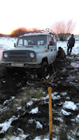 Не сильно разбираюсь в такой технике (первый подобный автомобиль), но по состоянию могу сказать вполне нормальное. Перед дорогой подкрутил шток выжимного (плохо включались скорости), подшаманил проводку. ДВС 4178 работает хорошо, не дымит, масло не берет. Капает масло с картера сцепления, думается мне что коренной сальник. Но как говорится если с УАЗика ничего не капает значит уже не чему). Коробка раздатка и мосты работают.