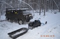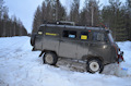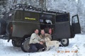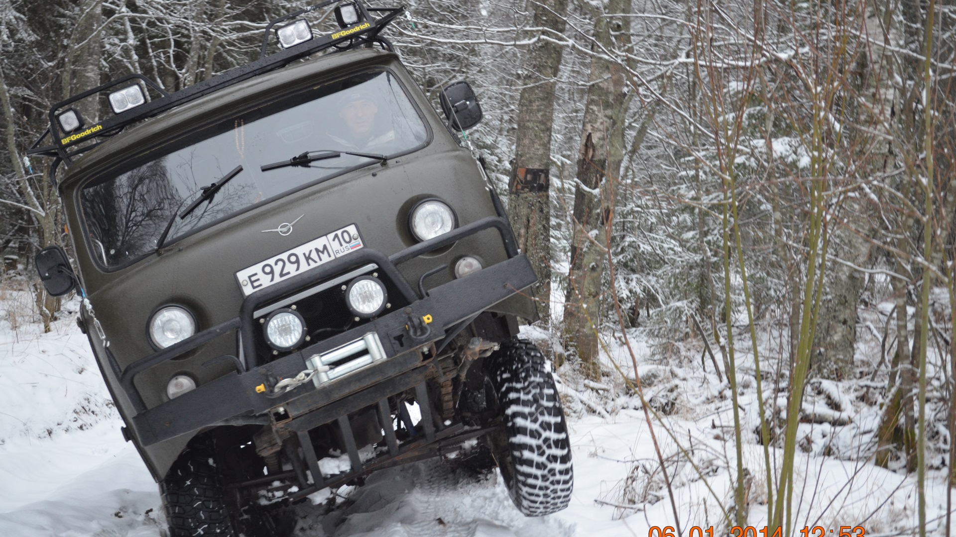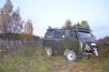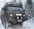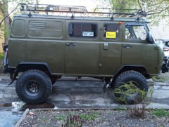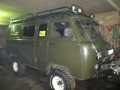 УАЗ (буханка) идентификационный номер 3909 куплен со вторых рук в апреле 2006 года. Год постройки 1999г. Достался в не очень хорошем состоянии от первого хозяина. Машина куплена специально для леса. а так же для рыбалки. Сколько всего поменяно и перебрано за время обладания данным авто долго перечислять. Но вот в очередной раз сломался в лесу во время проведения отпуска и решил что надо что то кординально менять. Огромное спасибо товарищу по работе Николаю, кстати Николай, владелец, Напарника Ядерной смеси, что вытащил с лесного осеннего плена и затем как говорится понеслось. Хорошо иметь таких друзей кода у них в друзьях числятся такие друзья как Vovan 452. Хотя практически всю свою молодую жизнь мы прожили на одной улице, но пути господни неисповедимы и мы практически в юношеские годы не общались, но теперь! Что сделано за короткий период с октября 2012 по апрель 2013 год. Не буду вдаваться во все тонкие детали по той причине что в некоторых я не вполне компетентен. Переварен кузов это во первых. Во вторых заменены мосты со скоростных на тяговые. Опять таки спасибо ВОВАН 452 (мои мосты сняты и установлены тяговые Б/У ВОВАНА.) В них задний самоблок БТР-60, передний принудиловка СПРУТ., Установлен компрессор БЕРКУТ Р-20, Гудрич-33, дисковые тормоза по кругу. В переднем бампере лебедка с радиоуправлением Т-МАX 9500.ГУР Газ-66 Соответственно багажник на крышу с фарами, на перед и на задний ход. Веткорезы.Силовой обвес! Расширены и подрезаны колесные арки. Установлены кресла от ОПЕЛЬ ВЕКТРА "В" Снята перегородка салона и багажника. Сделаны полноценные спальные места. Произведена полная вибро и тепло шумоизоляция салона. Салон полностью обтянут карпетом. Установлена музыка с ДВД проигрывателем. Центральный замок на двери и сигнализация ПАНТЕРА. На ближний свет совместно со штатным в нагрузку установлены танковые фары. Установлены раздвижные окна в салоне (видео и установку не выкладываю, желающим посмотреть можете обращаться к Vovan 452. Установлен автономный воздушный отопитель Eberspächer AIRTRONIC D2 на дизельном топливе с мини-таймером. Теперь морозы не страшны. Установлен дизель NISSAN TERANO TD27T с помощью обладателя ЯДЕРНОЙ СМЕСИ. Воздух в пневмосистему теперь качает кондей с движка. Беркут занял место запасного компрессора. Коробка с раздаткой Ниссан Атлас 5 ступка, задний мост Ниссан Террано LSD.