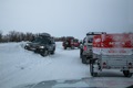 С утра дуло. Видимости опять никакой. Мерзкая поземка и молоко. Отоспаться не получилось, мы куда то торопимся, решили одеть лыжи. Лыжи нужны, прицепы тяжелые, в каждом по две бочки соляры, и колеса…