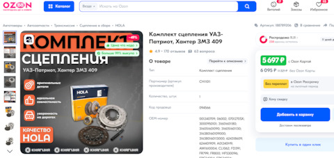 - Выжимной, сцепление: Hola, Luc, Озон и сервис