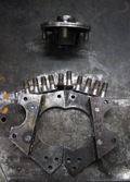 Поставил мотор 1.8, а этой пластины нет( наприкручивал там от АУДИ полупластину) как НАША выглядит не знаю, надо её где-то найти. Сейчас даже новый стартер "жуёт" от неловкого прилегания колокола. Да если можно хоть на моторе с торца фото.
