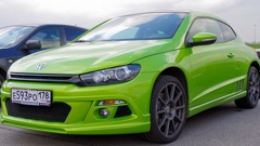 Итак, мой рассказ начну с того, что я начал искать Scirocco в Питере, обзванивал салоны, приезжал в надежде хоть глазком ее увидеть в живую, но их нигде нету, только под заказ, и то минимум 3 месяца . Я по расстраивался, но не унывал, зашел случайно на auto.ru и увидел в разделе подержанных эту машину в Питере в наличии, в той комплектации что хочу, еще и с замечательными бонусами . Сразу собрался и буквально отпал от внешнего вида при первом просмотре в живую : салатовая, в обвесе, спортивный руль, навигация(хоть и на транслите, но работает) и многое другое что меня поразило! Вот мои первые впечатления об автомобиле!