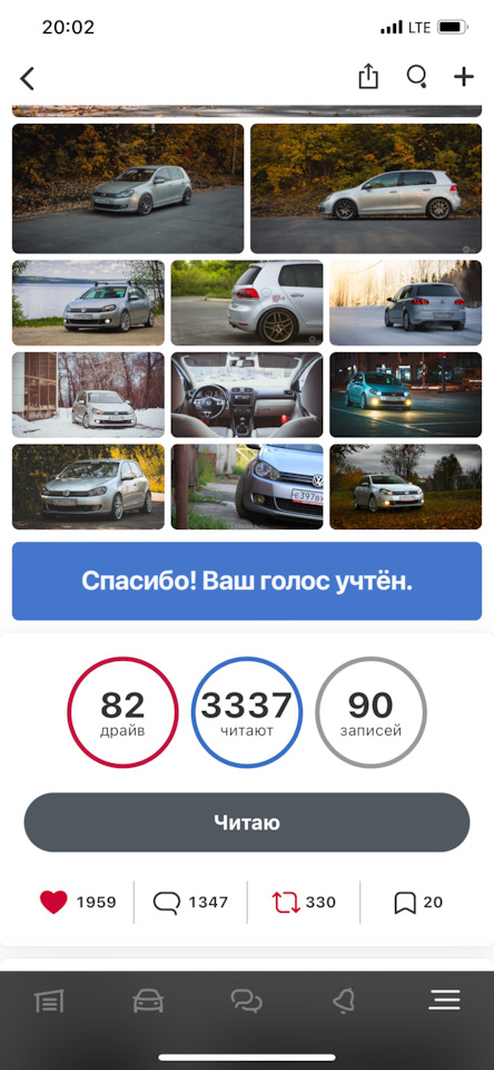 Да это не удивительно так-то 🙂 у меня обычный ухоженный гольф без каких-то полезных поучительных записей в БЖ 😄