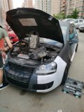 На данный момент имеем Volkswagen Golf mk5 GT-sport: 1.4TSI, мотор BMY c МКПП и чипом Reborn technologies. Точную мощность указать пока не могу, т.к. нужно устранить косяки по наддуву и сделать замеры на стенде. В стоке было 140 сил.