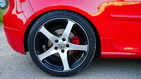 Красный цвет всегда идёт машинам, с задорным характером. А Golf GTI Mk5, явно в их числе. :) Подпись на собрата.