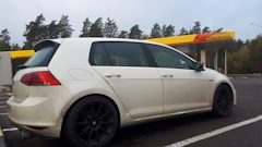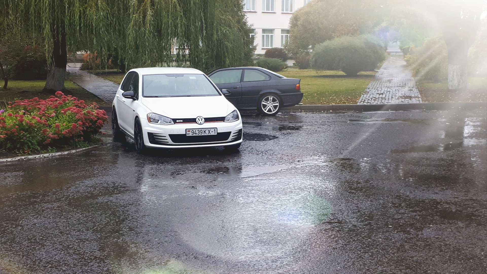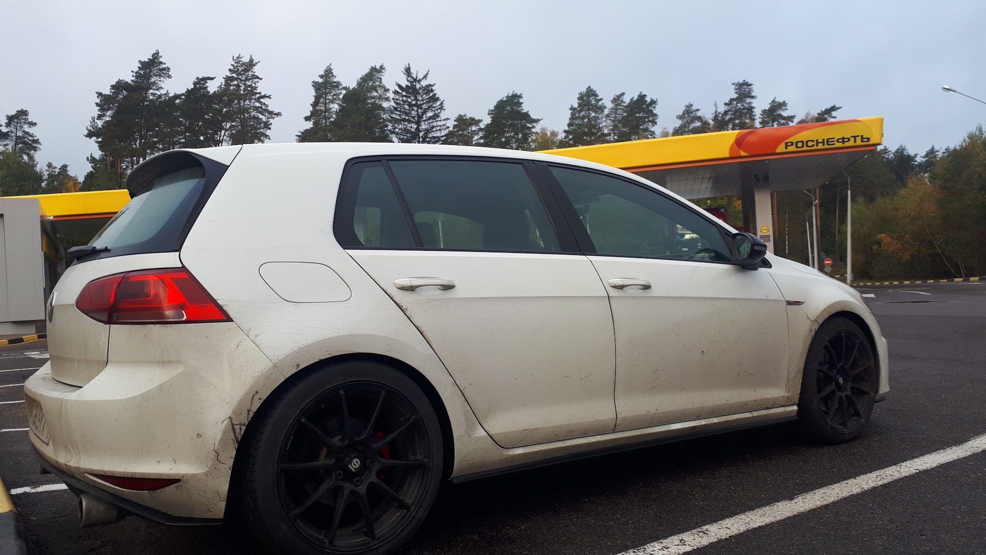 VW Golf 7 gti был куплен в США на аукционе (с небольшими повреждениями по кузову и взорванной безопасностью), приплыл без выхлопа и заднего сидения(все успешно найдено и установленно) но в очень хорошем состоянии(околоновом), чем приятно удивил…из комплектации: бомж оптика, салон из 70-тых в шотландскую клетку, 2 литра + DQ 250.