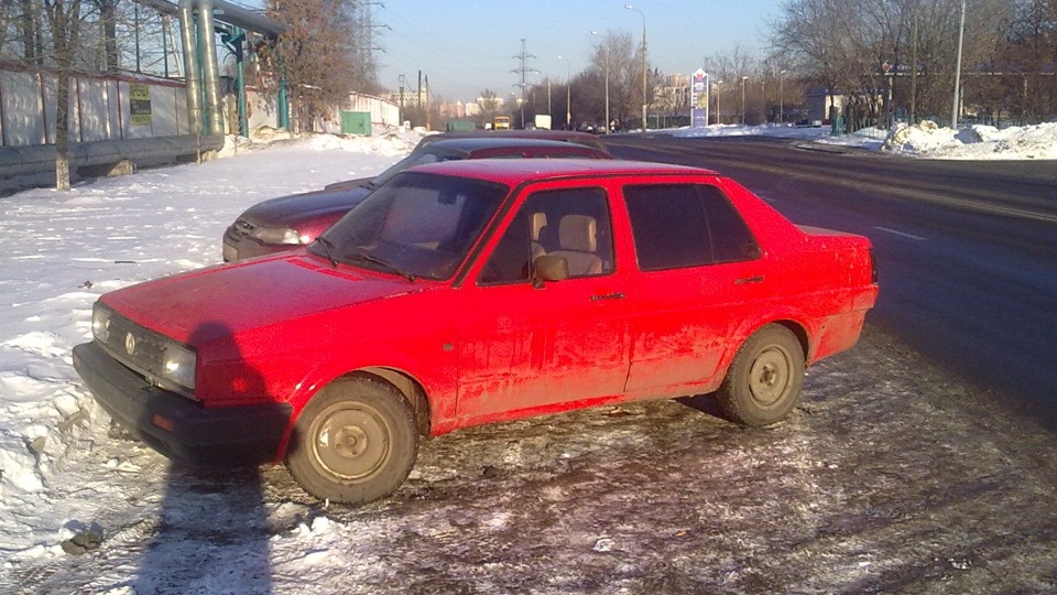 Как то раз проснулся и вдруг понял, что пора обзавестись своей собственной машиной. В кармане было около 40к рублей. Стал прикидывать, что можно на них купить? За такую цену выбор конечно не велик…Хотелось что то на уверенном ходу и чтобы было не битое, чтобы были дешёвые запчасти и не слишком мудреная конструкция (вобщем чтобы самому без особого напряга можно было б многое починить). Все это явно указывало на советский автопором). В идеале я рассматривал 9ку ВАЗ, ну на край 7ку или вобще на край пятёрик)Но как то не срослось с ними. Смотрю предложения БУ авто, о вроде хорошенькая по фоткам, звоню а там мне отвечают что уже продана… Вобщем туда позвонил — продана, сюда позвонил там какая то проблема. Целую неделю ездил смотреть всякие авто по объявлениям и все не то… там гниль, тут с документами не порядок. Я тогда конечно понимал что за те деньги которые у меня конфетку не купишь, но хочется жить то красиво!) Уже было расстроился, как вдруг звонит друг и говорит, что нашел для меня машину моей мечты!) Это был фольцваген джетта 87го года. Причем он меня уверял, что машина абсолютно не гнилая, и заново покрашена всего за 20к. Вобщем говорит бери её, такое выпадает раз в жизни и т.д.)" А да, ток там салон не собран, и с фарами проблемка, но я тебе если чего помогу!)" Чего сразу не понравилось так это мотор в 1.3л, слишком слабый подумал я про себя (как в дальнейшем показала жизнь, я оказался прав 1,3MH слабенький мотор. Нет он конечно неплохой -130км/ч разгоняет и за него не надо платить налог, т.к. указано 54.5 л.с., но не для меня. Нет такой вот живой динамики. Пока молодой охото давить тапку в пол и чувствовать отдачу) И потом как писал А.С. Пушкин -"Какой же русский не любит быстрой езды?!") Загнали авто на яму, просмотрели днище вроде без дыр. На удивление машина заводилась с пол оборота, легко и непринужденно!) Но вот на что я купился, так это люк)))Под "несобранным салоном" я никак не представлял, что это реально внутри голый автомобиль, кругом голый металл водительское сиденье, руль педали, рычаг переключения передач и все!)Все остальное входило в комплект покупки, но выдавалось на руки. Также тёк радиатор печки. В итоге заплатили деньги, закинули все запчасти в салон и багажник. "И он сказал поехали, и взмахнул рукой!" При перегонке авто до дома по началу машина вела себя хорошо, но потом стала троить и глохнуть. Кое как докатили. Сразу поменял масло с фильтром. Дальше выяснилось, что течет термостат… Где то через месяц, на холодную начала гудеть коробка передач… Как в дальнейшем выяснилось там не было вобще масла, оно все вытекало через датчик включения заднего хода. Проблем было много… Как только что то ремонтировал, что то другое выходило из строя… Где то на гольфоводском форуме я прочитал такую фразу: "Чем старее автомобиль-тем в нем больше новых деталей" Я ее прозвал Красная Бестия, за такой непростой характер) В конце концов довел до ума, добился безотказной работы.