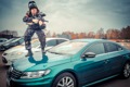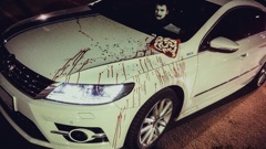 Это на Хэллоуин делали, там и за рулем в гриме :) Там театральные кишочки лежат на капоте… :)