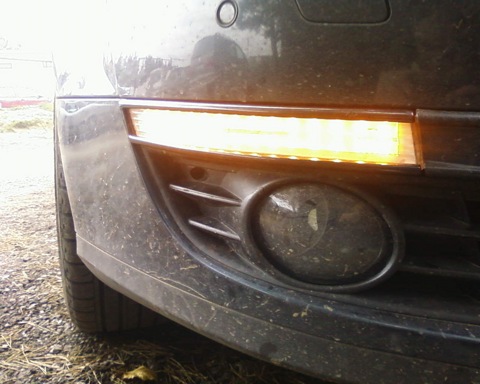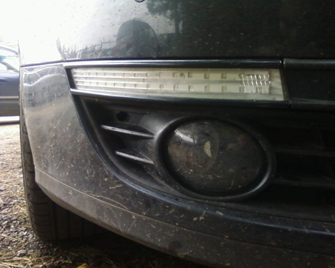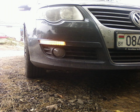Ничего необычного, поставил диоды в габариты и подсветку номера. В габариты с обманкой, в подсветку — обычные, обманку сделал сам ввиде лампочки за обшивкой)