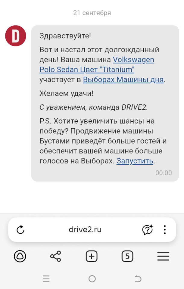 Сегодня попал на выборы машины дня