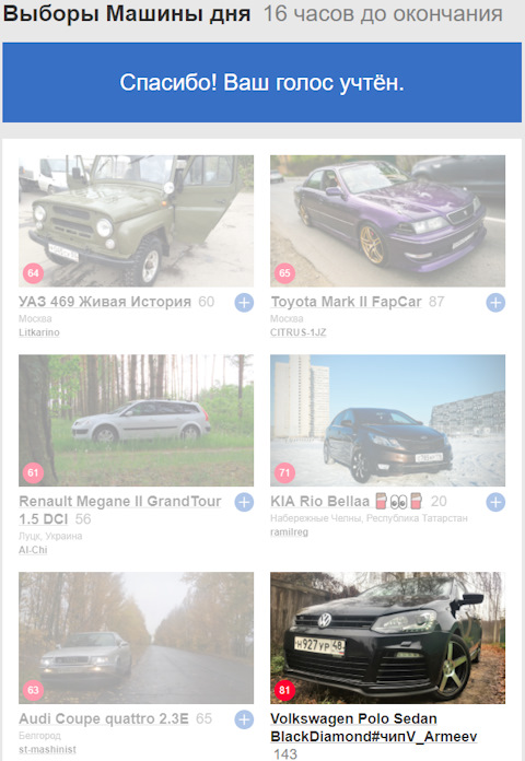 - Итоги выборов «Машина дня»