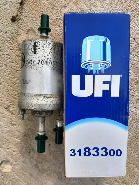 Произвел замену топливного фильтра в гараже с ямы. Новый, UFI 3183300, валялся в запасе еще с довоенных времен. Для замены использовал плюсовую биту PH1 с ручкой и воротком, таз для тех. жидкостей, к…
