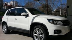 После удачной и надежной эксплуатации Volkswagen Passat Б6 Variant Sportline 2009 г.в. ( 2.0 TDI 140 л/с — двигатель СВАВ), на замену ему выбиралось авто "ПОВЫШЕ", с полным приводом и чуть меньшим размером. Выбирал опять только дизель, а не бензин! Потому что на ЮБК, тяговитый дизель экономичней и предпочтителен. Кроме того небольшой по своим размерам Тиг в купе с бензиновым двигателем и полным приводом по нашим пробкам уж очень прожорлив, так что 2,0TDI со 140 лошадками. VW TIGUAN — 2.0 TDI 16V [CLJA] 140 л.с. Комплектация все что нужно есть: кожи нет (не хочу), электропривод и складывание зеркал, биксенон, датчики давления, бесключевой доступ, off road, Media IN, круиз-контроль, компас и т.д., ну а дальше будут дополнения и улучшения.