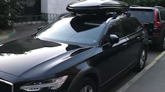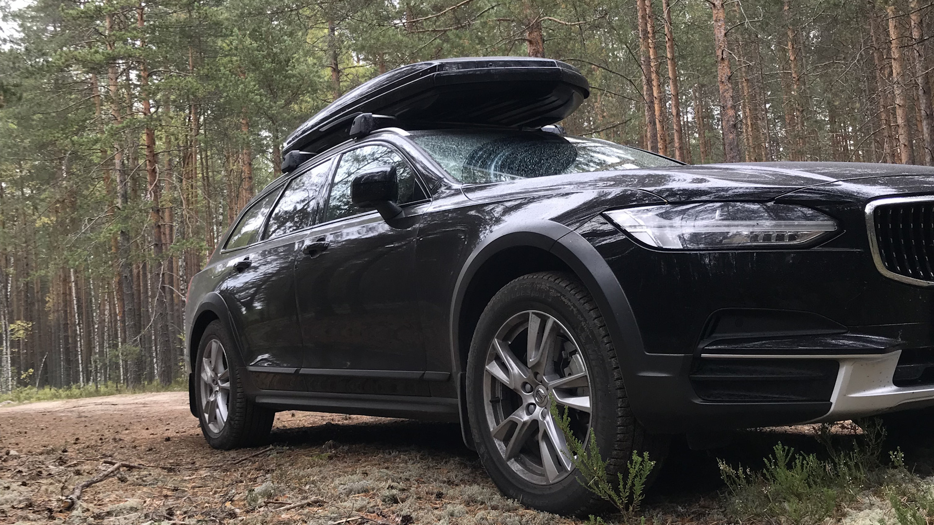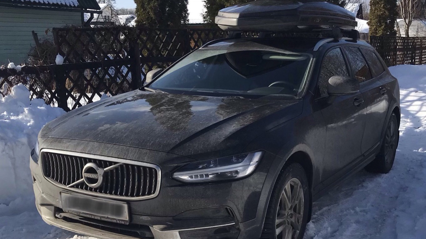 Комплектация авто PRO + необходимые лично мне допы. Плюс на ТО-0 прошивка Polestar в обязательном порядке. Автомобиль не покидая салона полностью оклеен (за исключением крыши, которую закатали спустя 10 тыс.км) защитной антигравийной полиуретановой пленкой Suntek PPF. Авто подготовлен для ежедневной эксплуатации в суровых российских условиях, второй комплект колёс R18 — шипованный Michelin. На крышу установлен оригинальный бокс Volvo с предыдущей авто и вполне органично вписался в образ авто для путешествий.