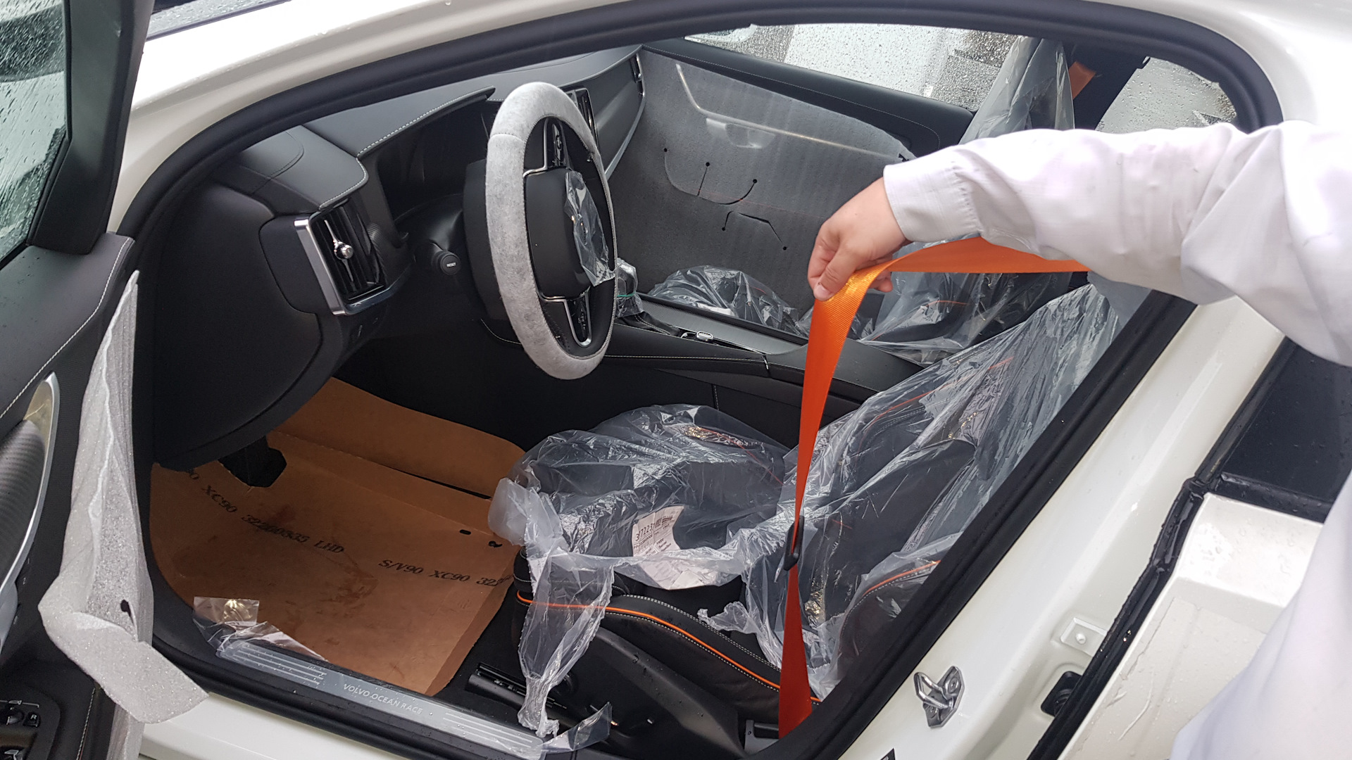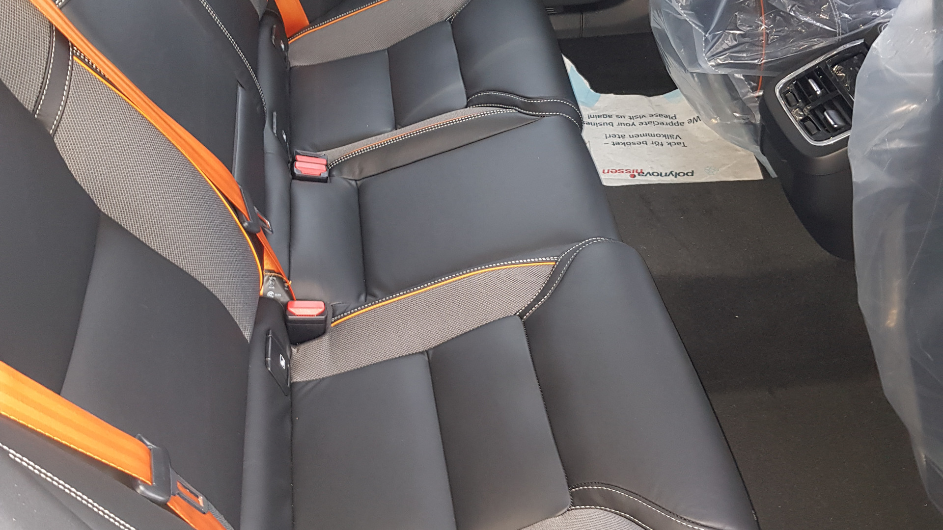 Офигеть какой салон. Рыжие ремни очень круто в темном салоне смотрятся. Нормальные фотки есть? А то под транспортировочными чехлами не айс.