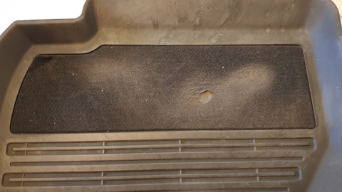 По прошествии 5-ти лет ежедневной эксплуатации подошел и мой черед ремонтировать/реставрировать водительский резиновый коврик… Хоть пятно протертости самого ворса вставки и не очень значительное, но…