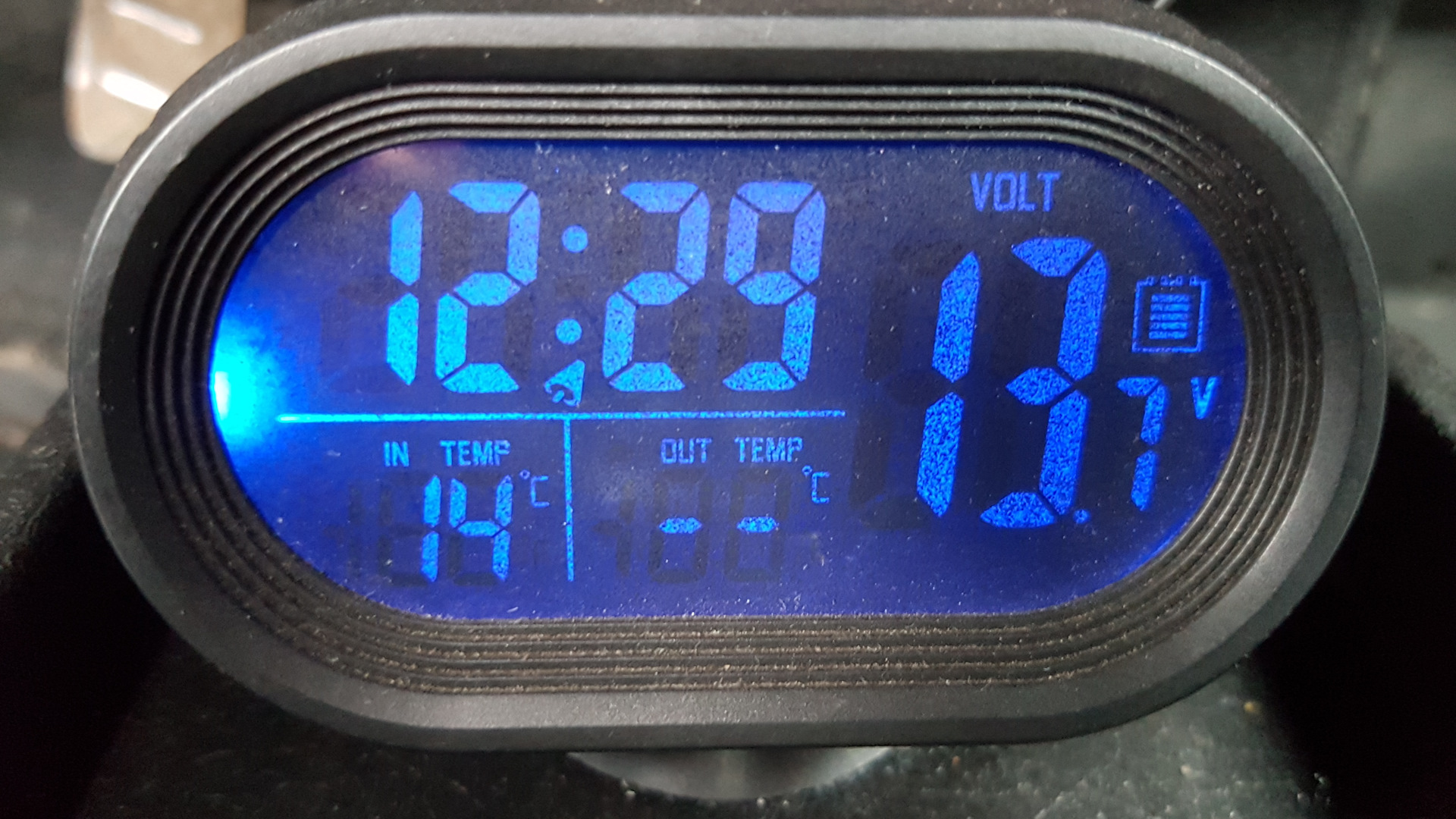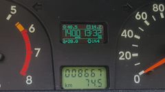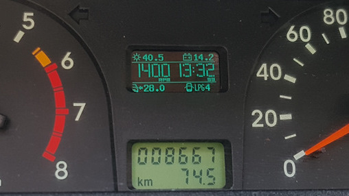 ● установлен бортовой компьютер на Arduino, вмонтирован в приоборную панель (цифровой тахометр и спидометр, остаток газа в литрах, время, календарь, напряжение в бортовой сети, уровень заряда аккумулятора, температура внутри и снаружи машины) — Установка бортового компьютера (Arduino).