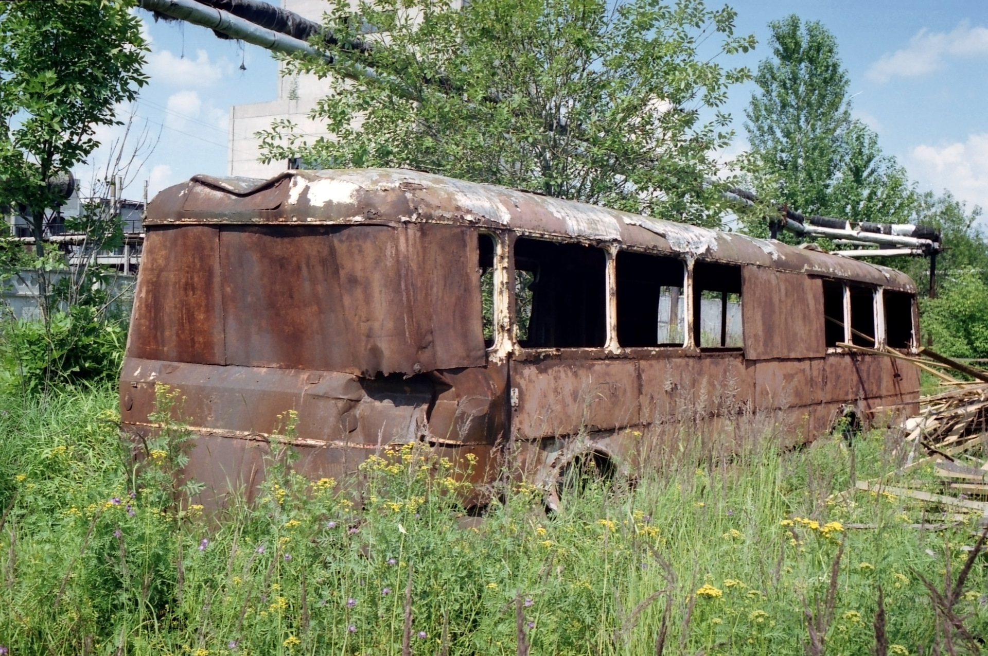 Конец Июля 2003 года. Останки автобуса Икарус-556 на деревообрабатывающем комбинате в Твери. Несмотря на массовость этой модели 60-70-х годов, до наших дней в мире сохранилось всего несколько штук.