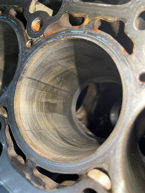 Вот на таких задирах собрали мотор, воткнули поршень б/у и выставили на продажу, как новую…)Как информируют ребята из MaDCaT, все болты не на своих местах, в целиндрах задиры, весь мотор в говне…