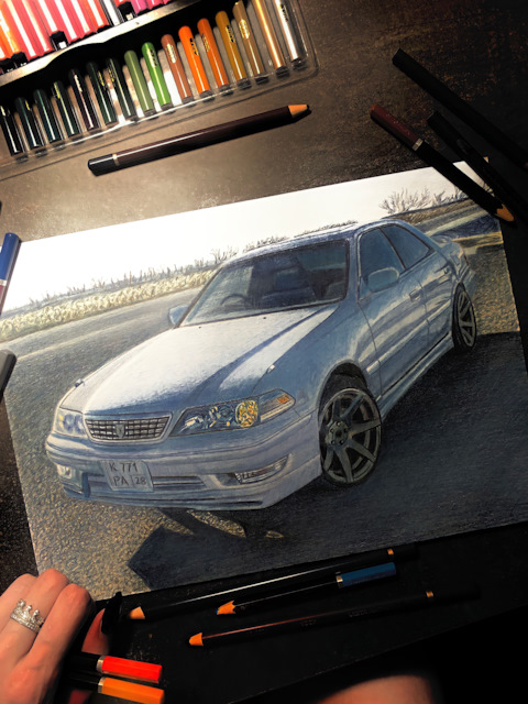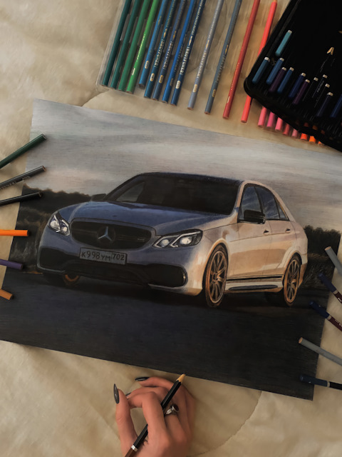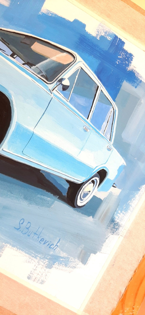 В этот раз хочу показать работу, с которой довольно долго сидела. Начала я её ещё в ноябре прошлого года. Захотелось изобразить чего-нибудь новенького на автомобильную тема…