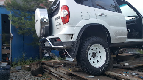 Подрезка бампера и установка злых грязевых 29,3" колес )