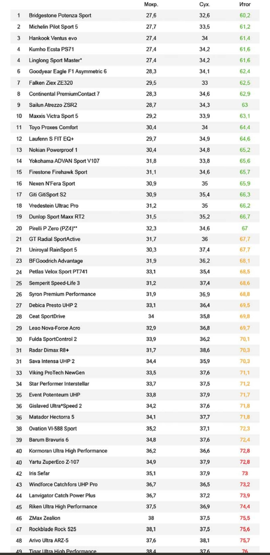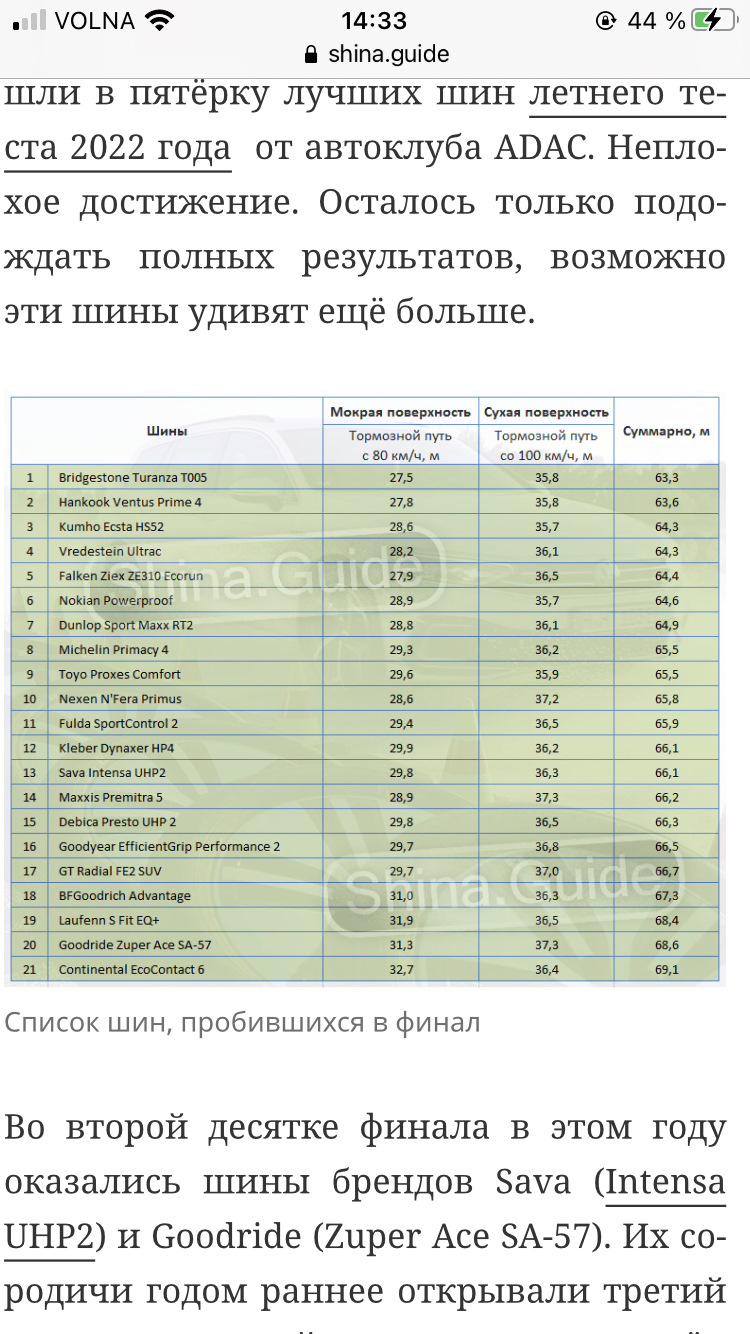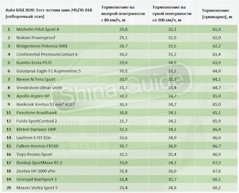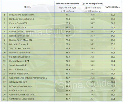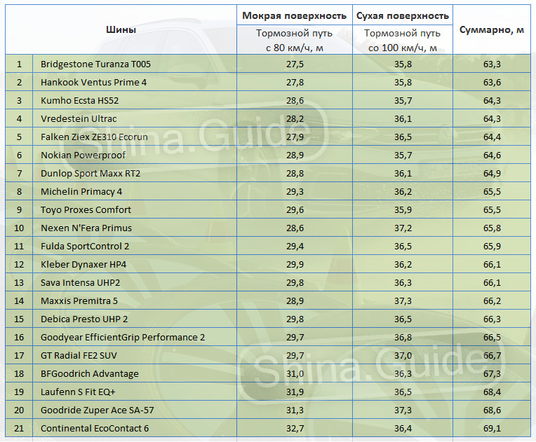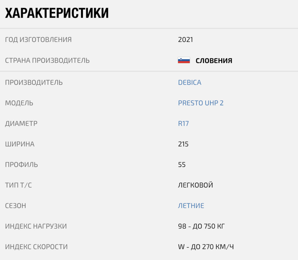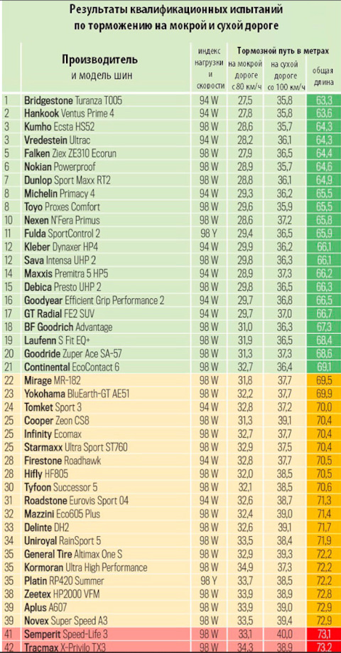 Размерность шин