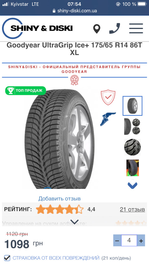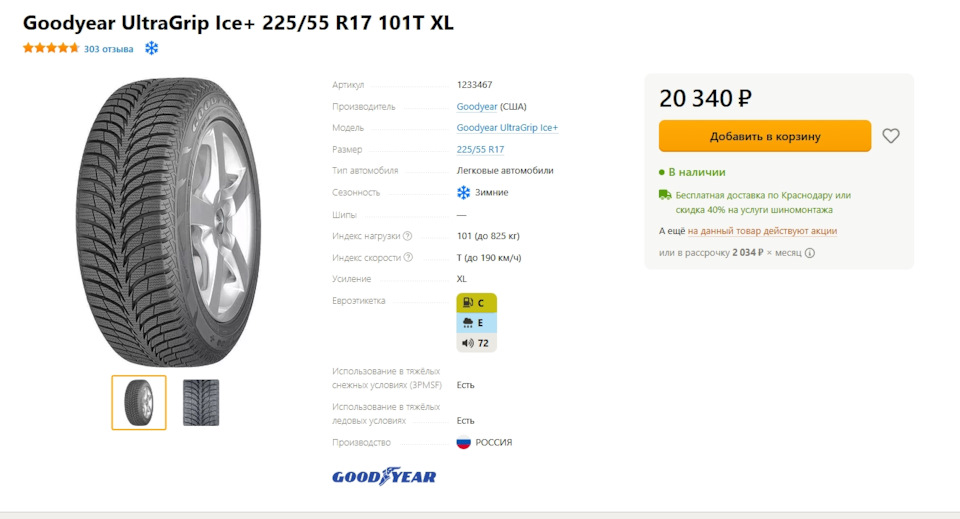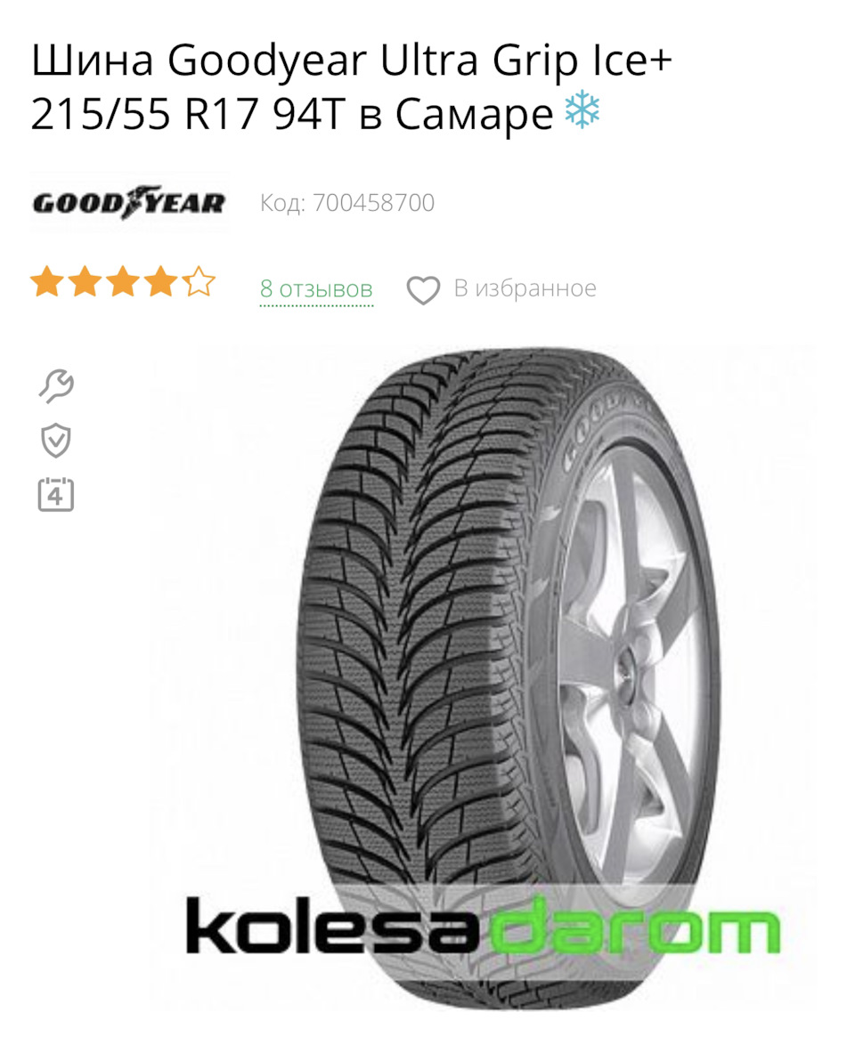 Шины Goodyear UltraGrip Ice+ 185/65R15 88T