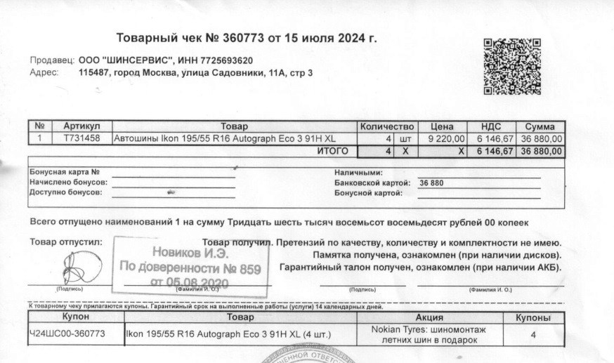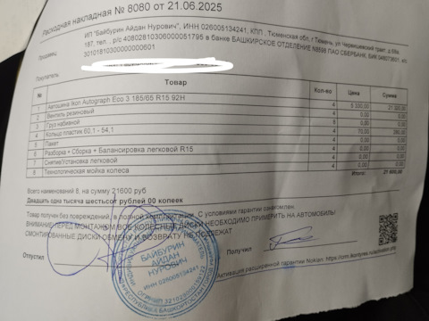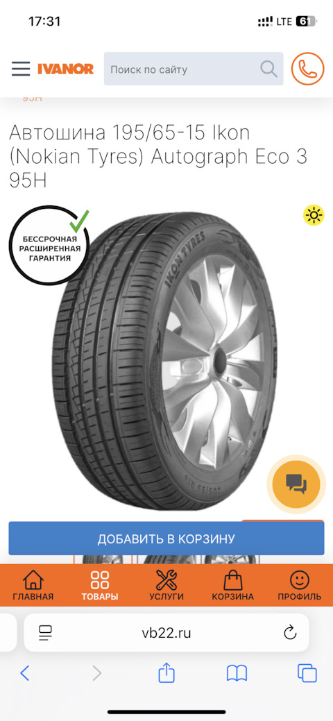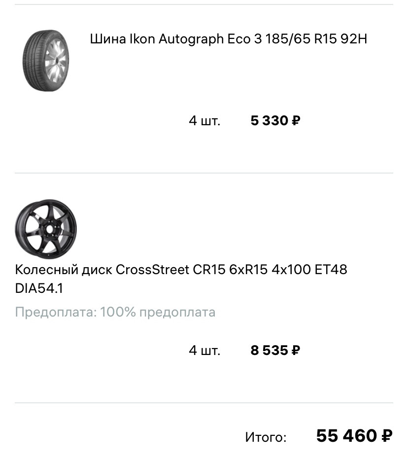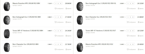 Размерность шин
