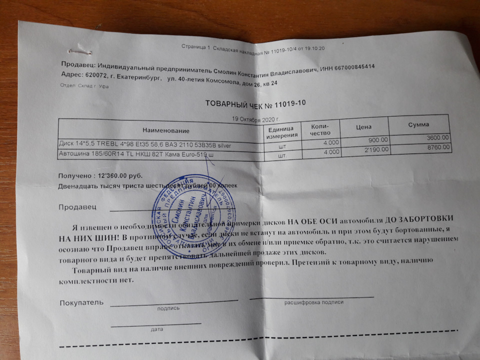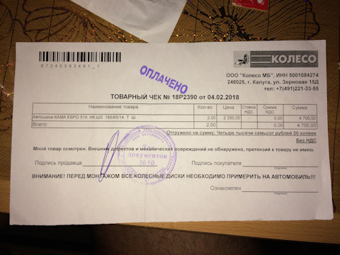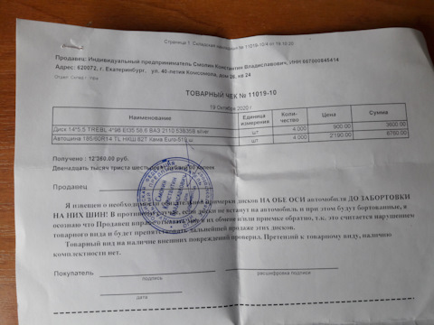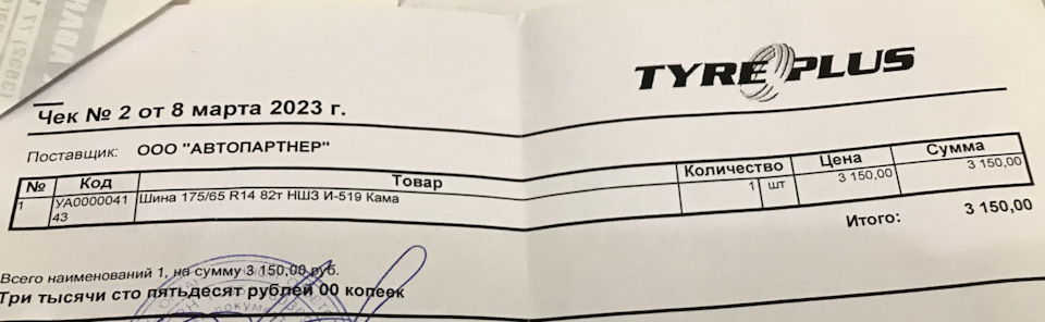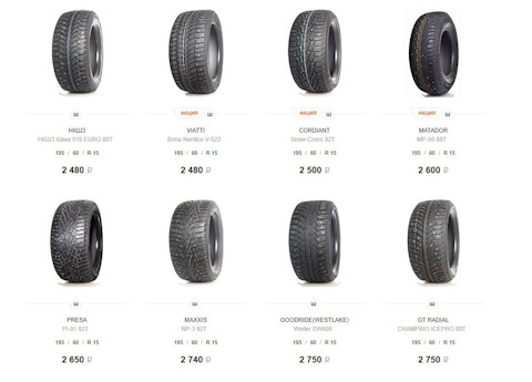 Размерность шин