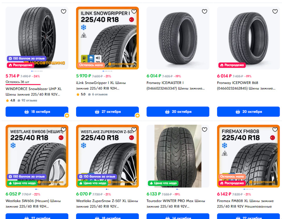 Размерность шин