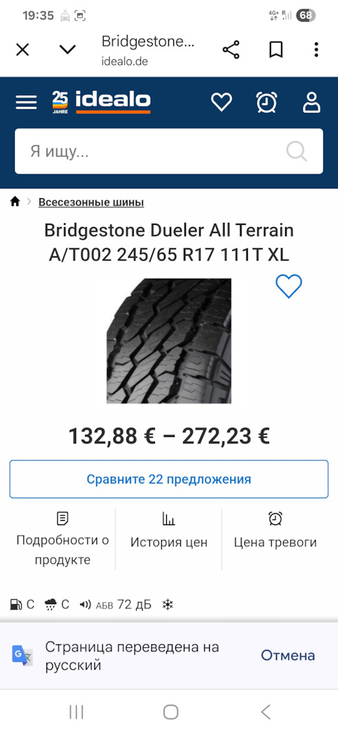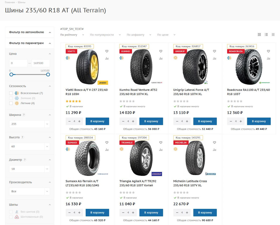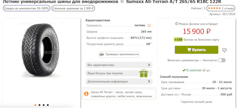 Размерность шин