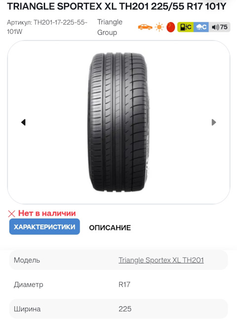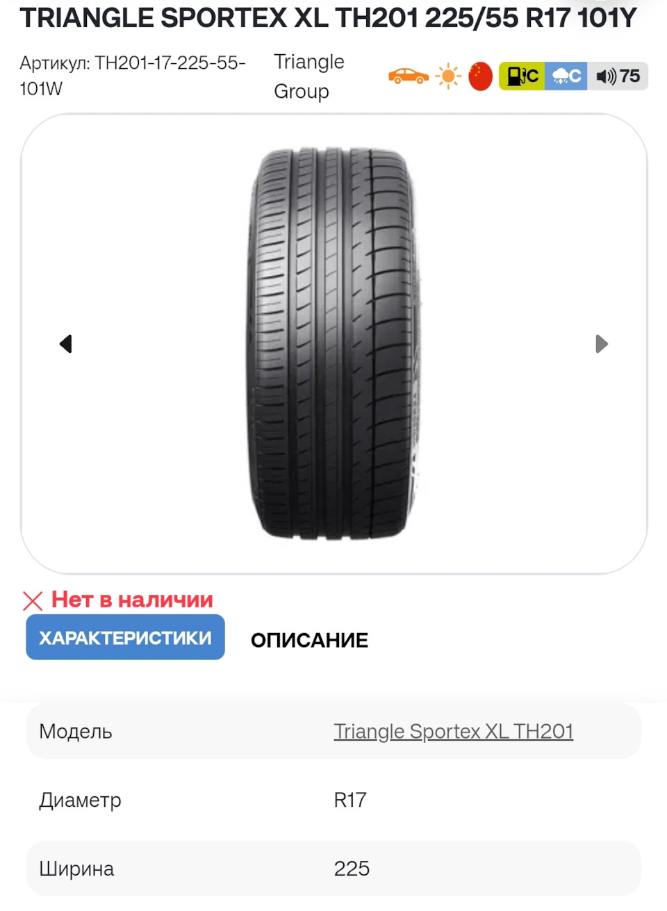 Отзыв о летних шинах Triangle Sportex TH201 225/35 R19