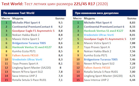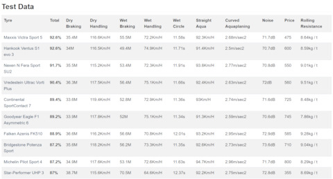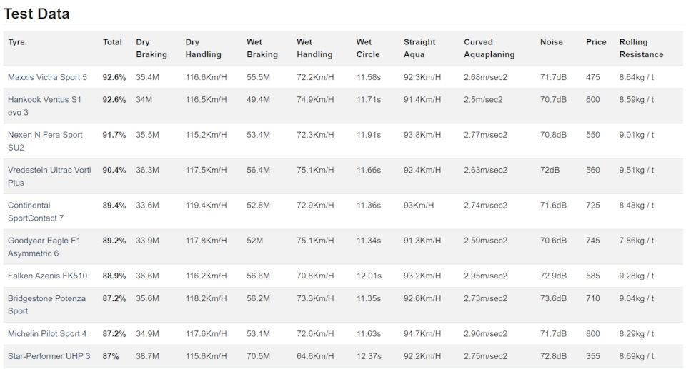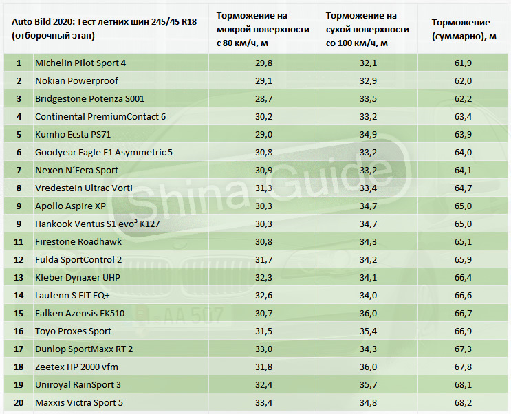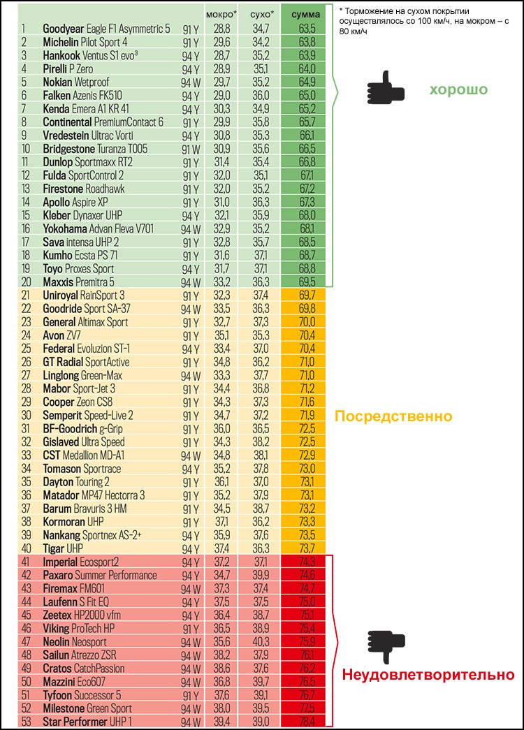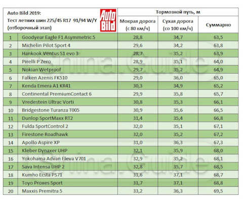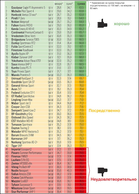 Размерность шин