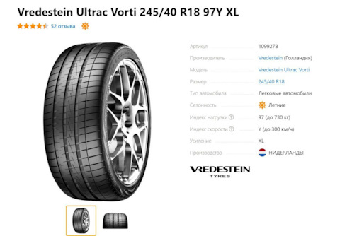 Шины Vredestein Ultrac Vorti