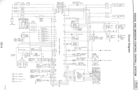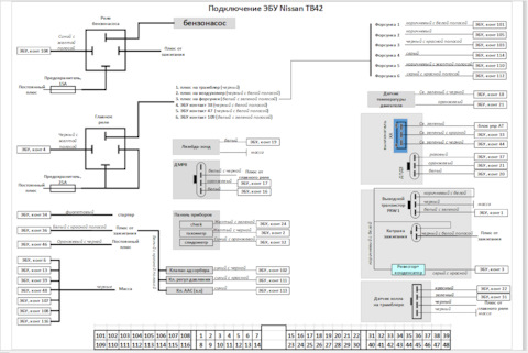 Блок управления двигателя Nissan Skyline RB25, проблема — не работает бензонасос. Нет сигнала управления с ECU — ножка 13, управляющий сигнал — "минус"